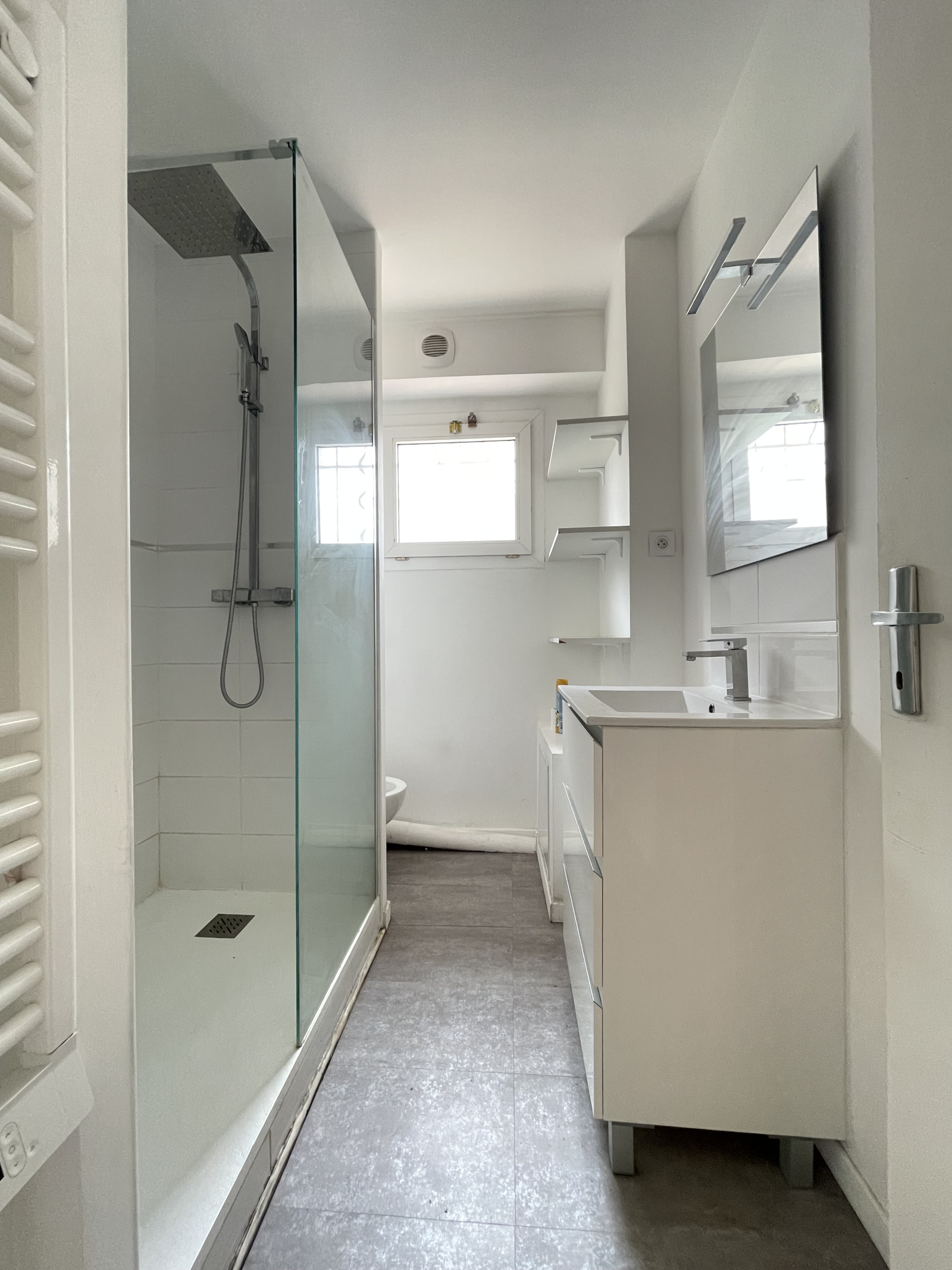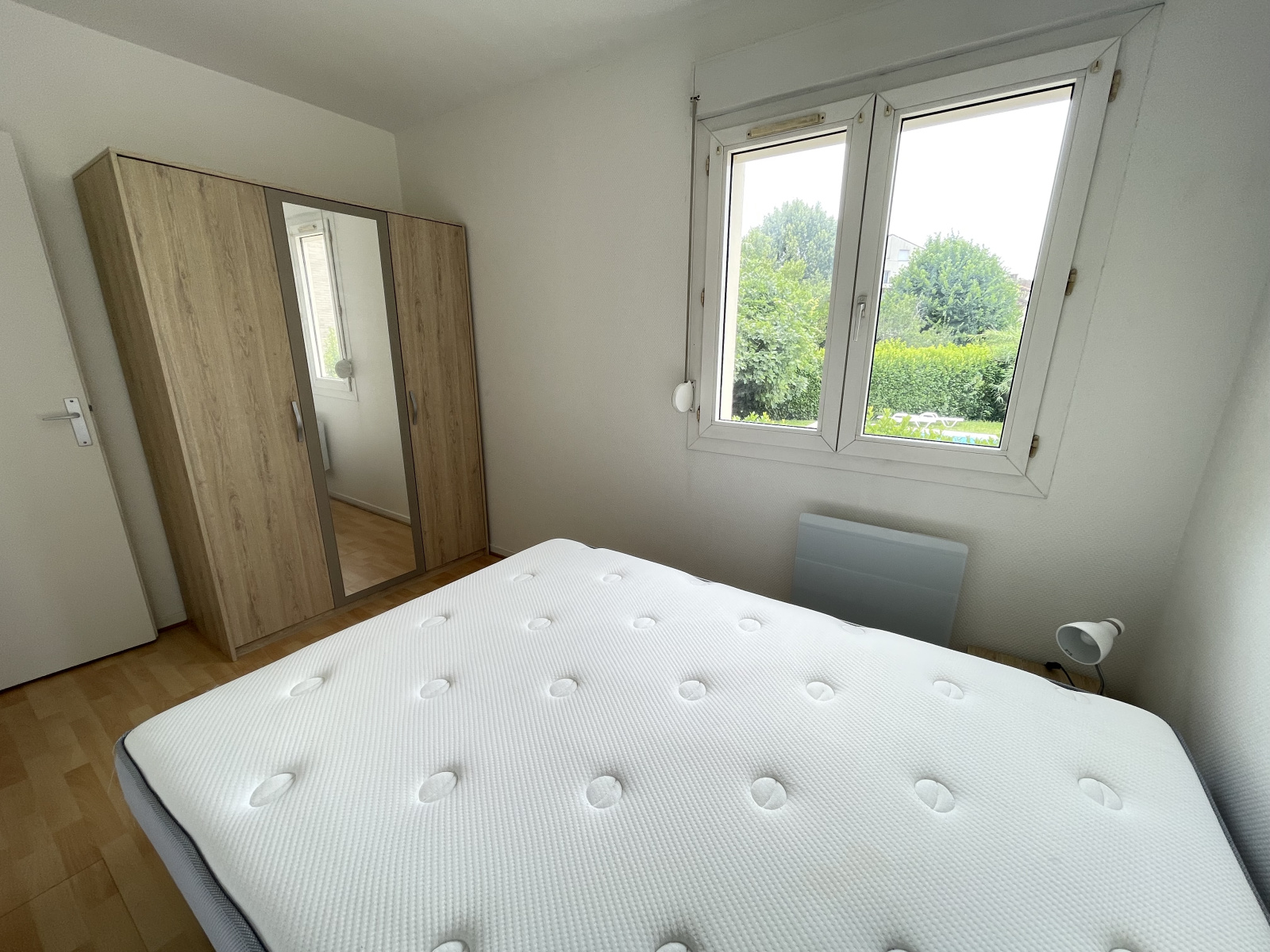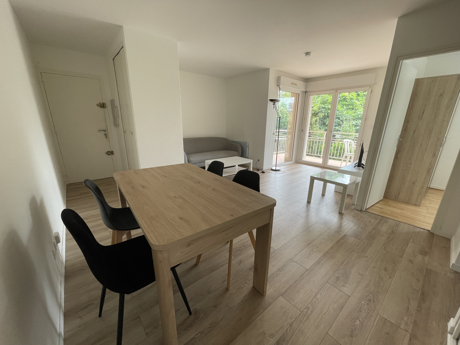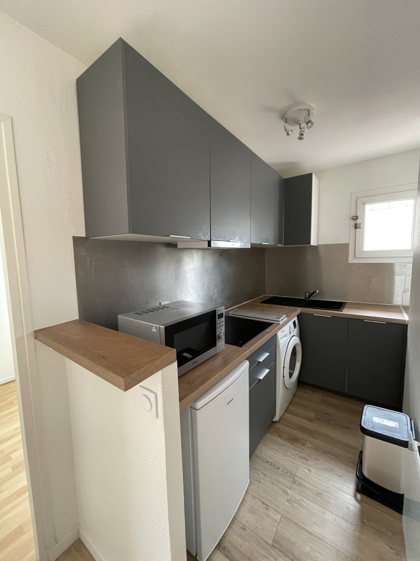L'appartement dispose d'une belle ouverture sur l'extérieur, lumineux et calme. Vaste séjour, cuisine aménagée et équipée (lave-linge, plaques, micro-ondes...), chambre avec placards et salle d'eau avec grande douche et fenêtre.
