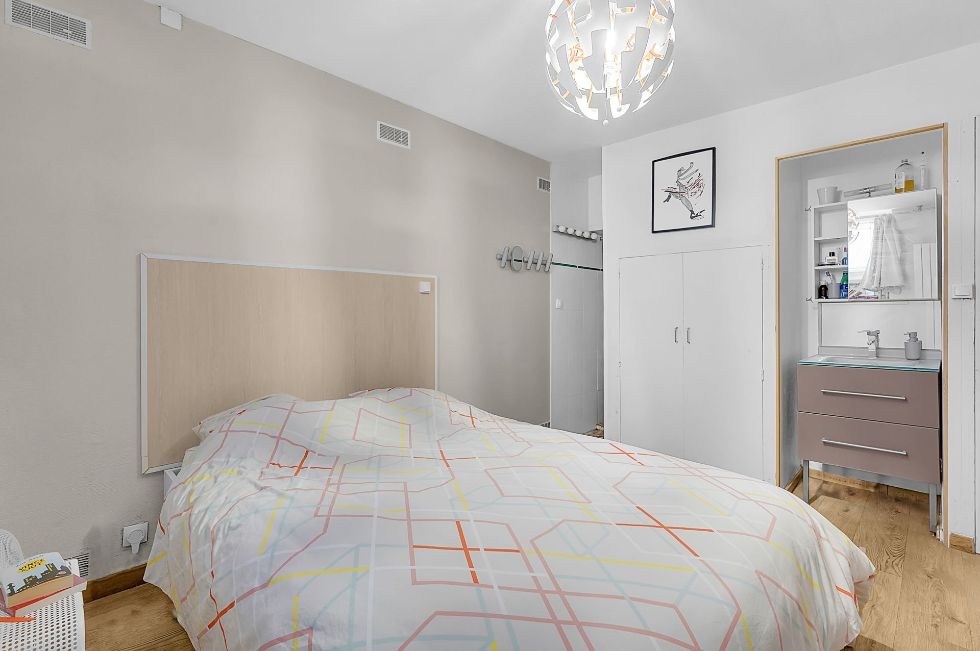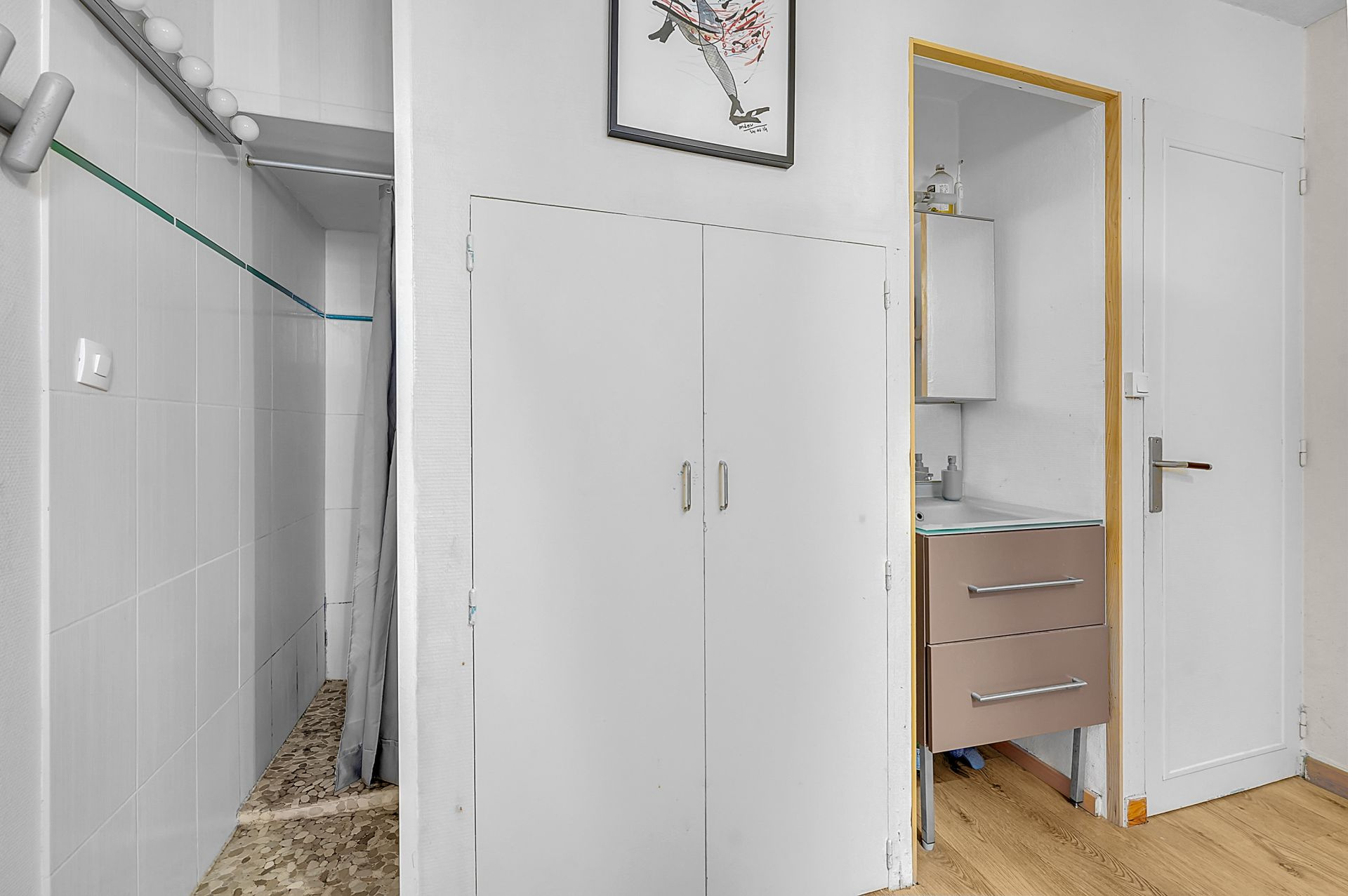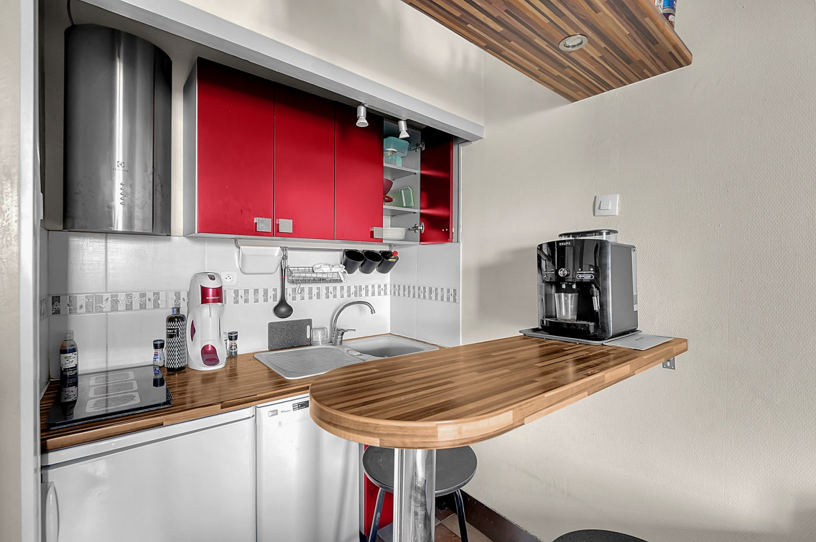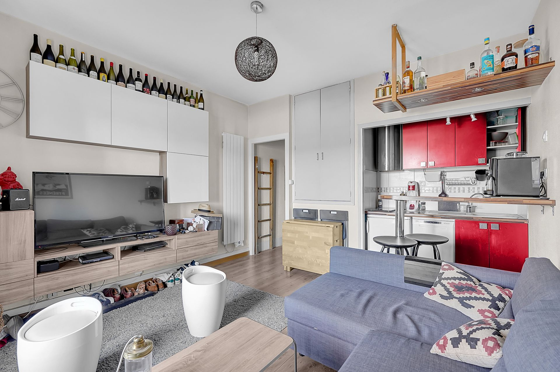 Il se compose d’une entrée, d’un séjour avec cuisine ouverte, aménagée et équipée (plaque, réfrigérateur, lave-vaisselle, machine à laver…), d’une chambre avec sa salle d’eau et d’un WC séparé.