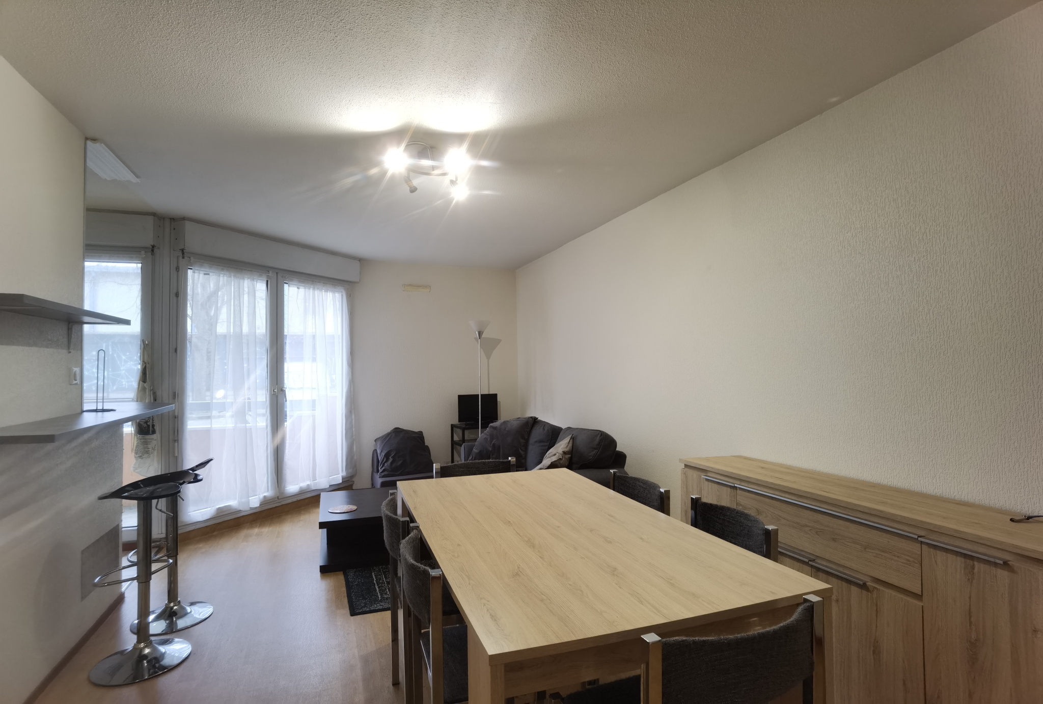 Joli T2 meublé d'environ 45 m2 situé au rez-de-chaussée.