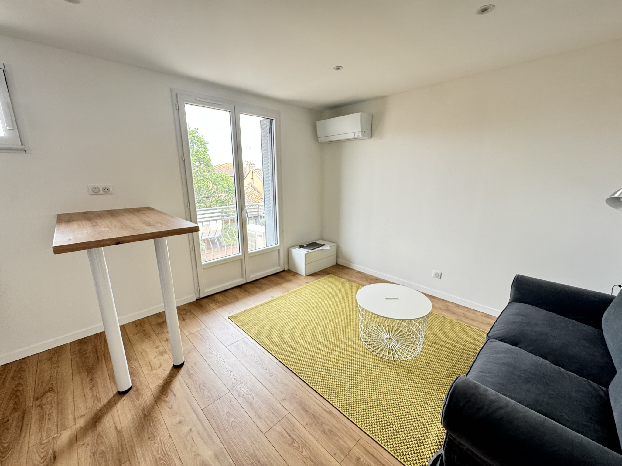 Situé au 2ème étage d'un petit immeuble, joli T2 meublé d'environ 36m² entièrement remis à neuf. L'appartement dispose d'une entrée, une belle pièce de vie donnant sur balcon, cuisine américaine entièrement meublée et équipée, chambre avec rangements au calme, salle d'eau moderne, wc.séparés. Climatisation réversible.