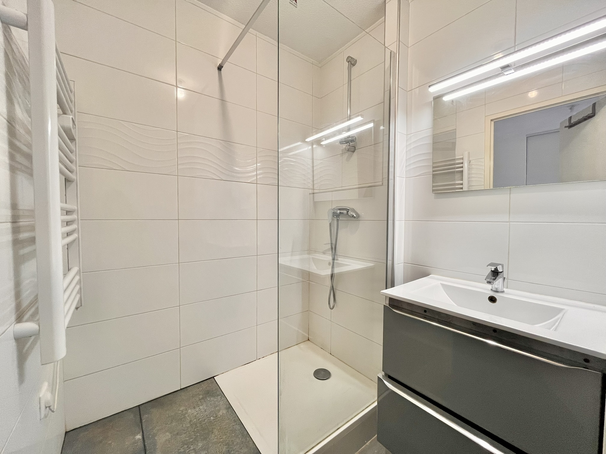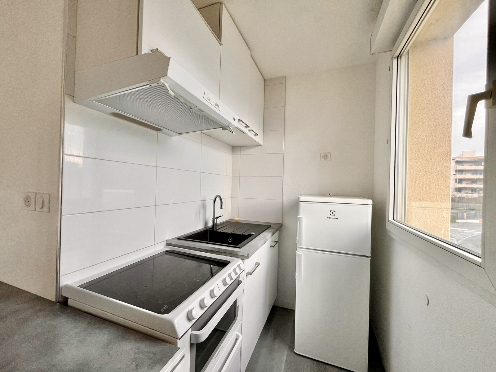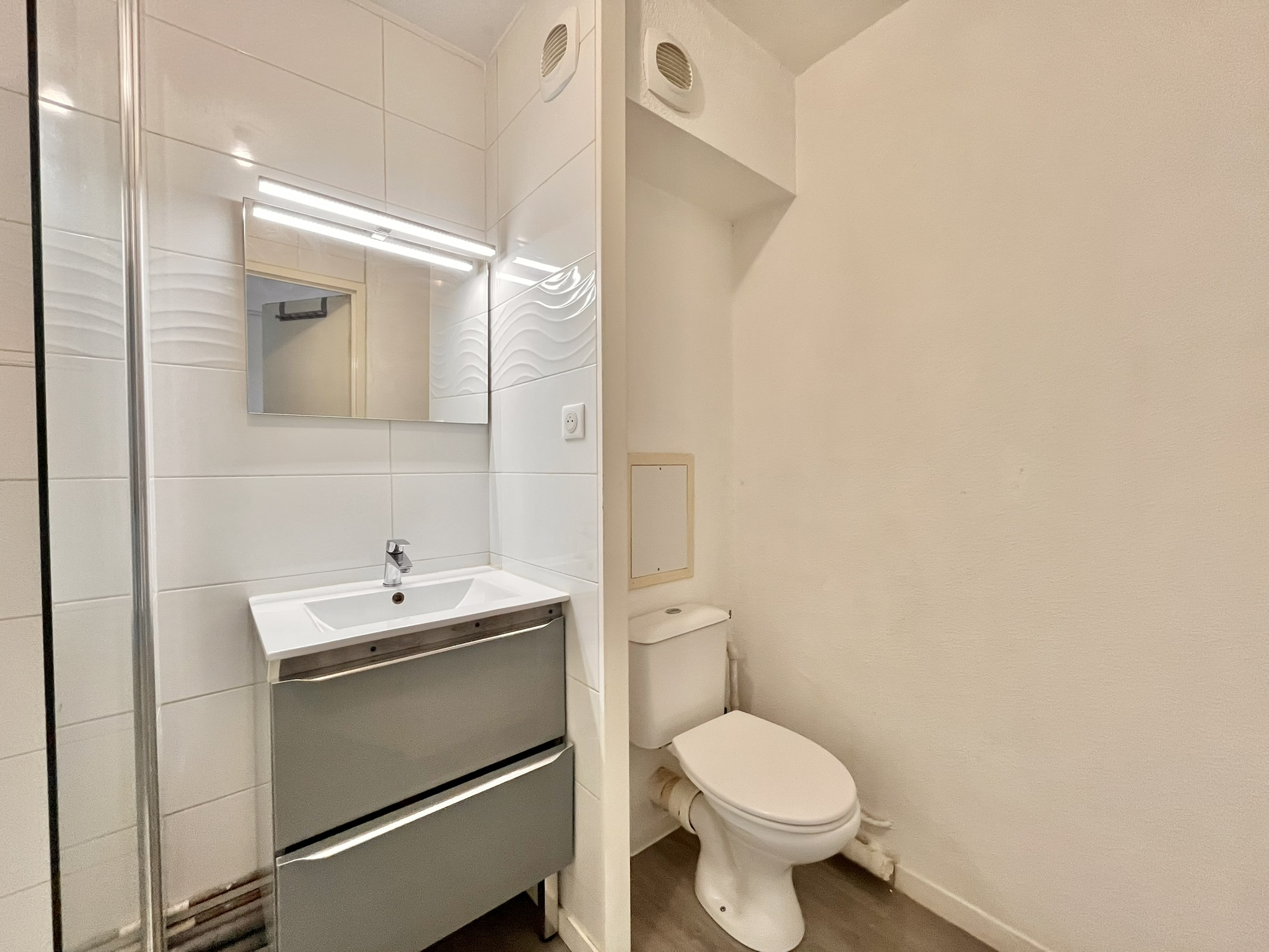 À louer, charmant T2 bien agencé comprenant : une entrée avec placard intégrant une machine à laver, une salle d’eau avec douche et WC, une terrasse, un séjour lumineux avec placard de rangement, une cuisine aménagée et équipée (plaque de cuisson, four, lave-vaisselle et réfrigérateur), ainsi qu’une chambre équipée d’un placard.