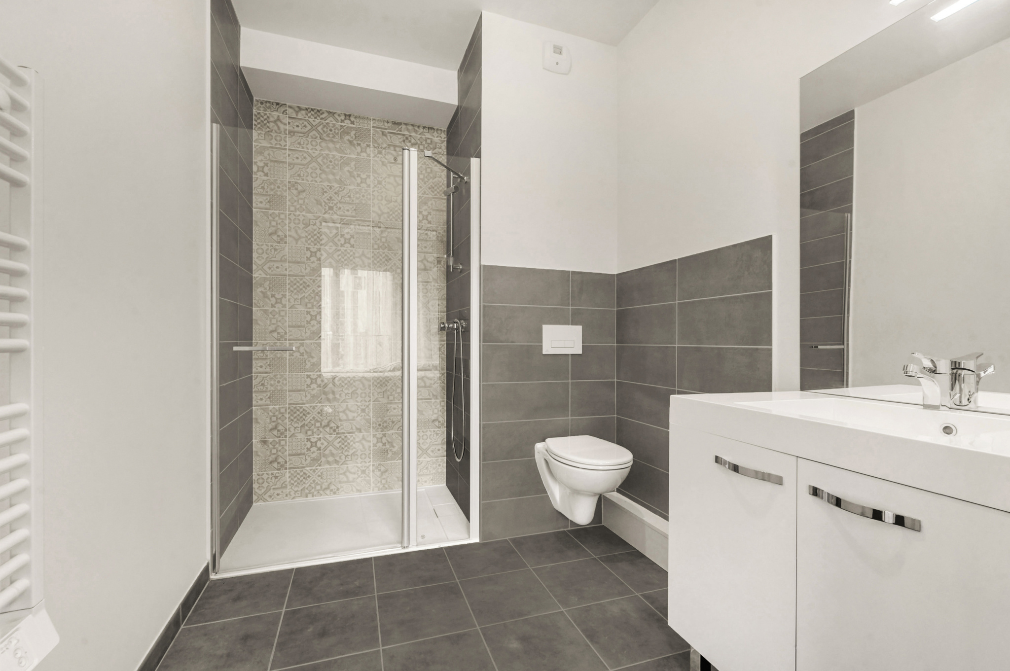 Dans un immeuble neuf de très bon standing, à deux pas du métro Roseraie, venez visiter ce joli et vaste T1 de plus de 34m² aux belles prestations composé :