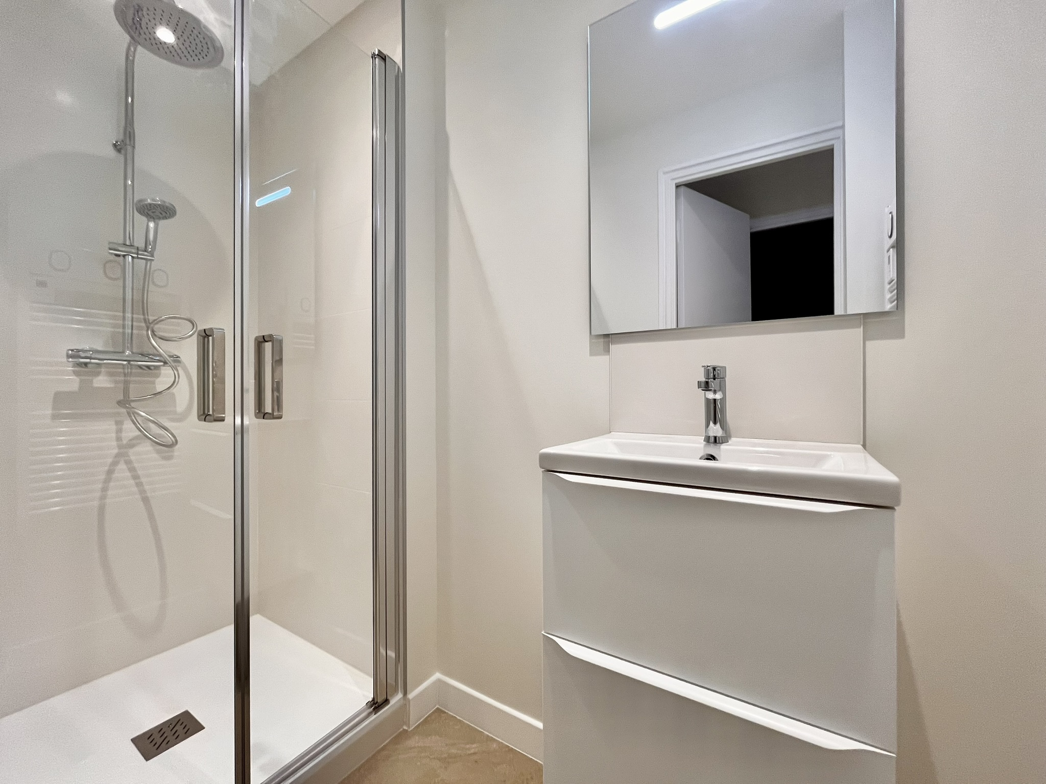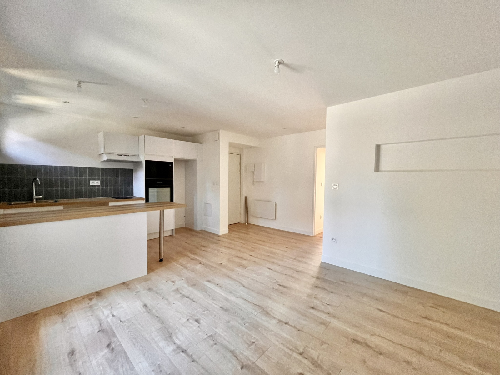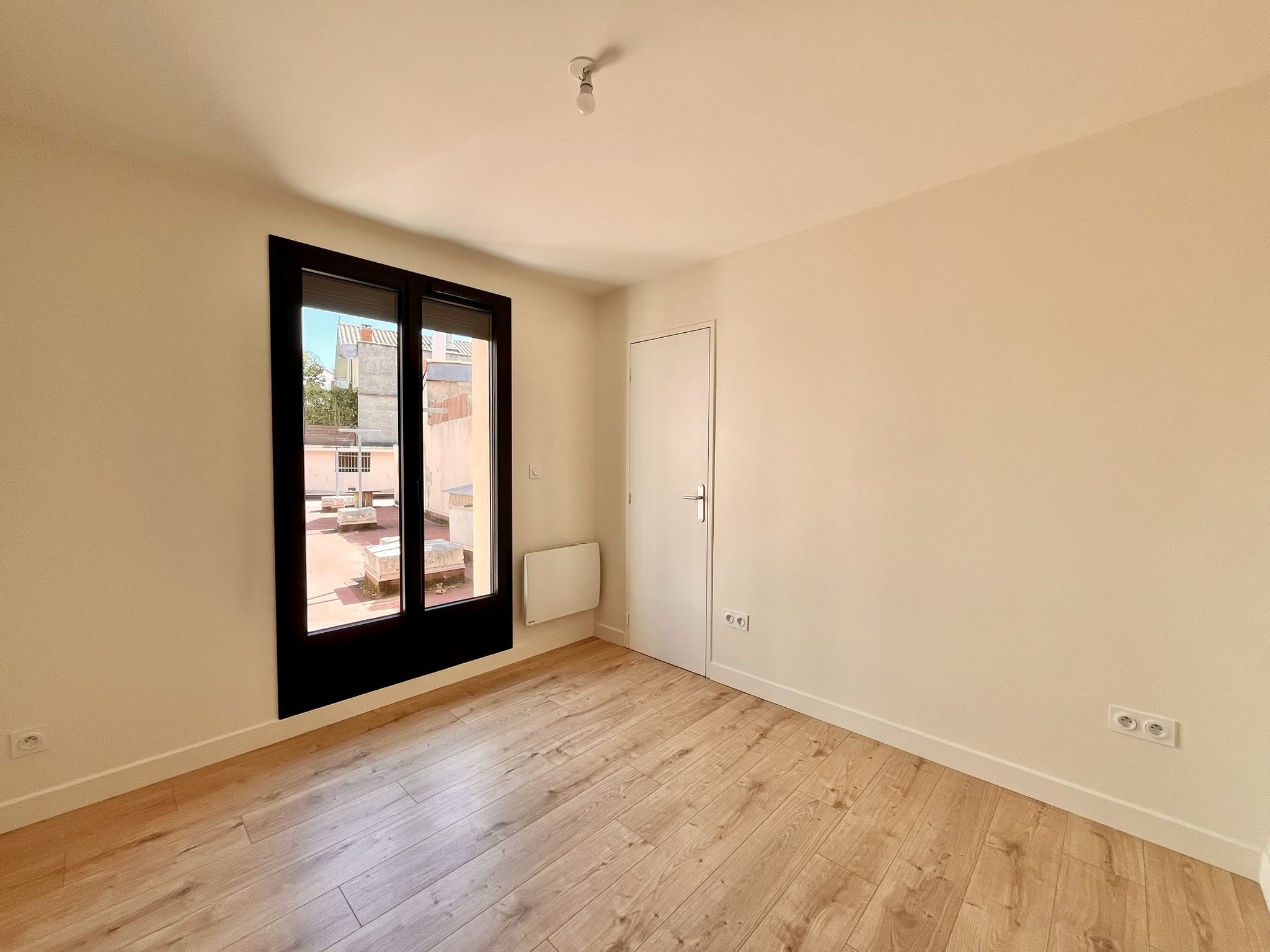 L’appartement se compose d’une entrée, d’une belle pièce de vie donnant sur un extérieur, d’une cuisine entièrement meublée et équipée, de deux chambres au calme avec rangements, ainsi que d’une salle d’eau moderne avec WC séparés.