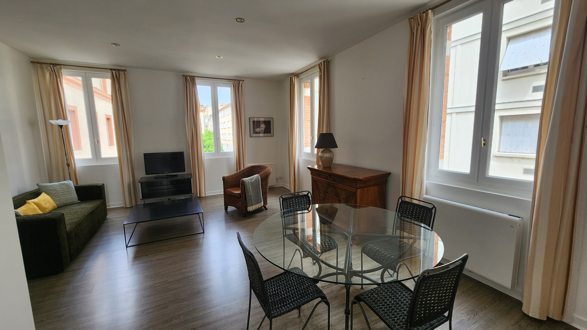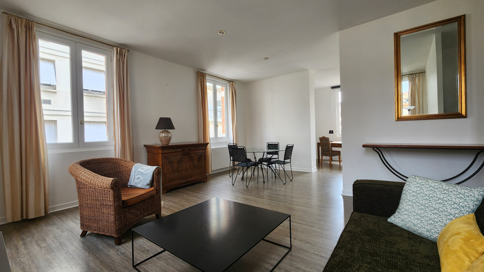 L'appartement se compose d'une entrée, une cuisine meublée et équipée séparée, un vaste séjour lumineux, 1 chambre meublée avec dressing, un espace bureau/chambre, une salle d'eau spacieuse et rénovée, un WC séparé.