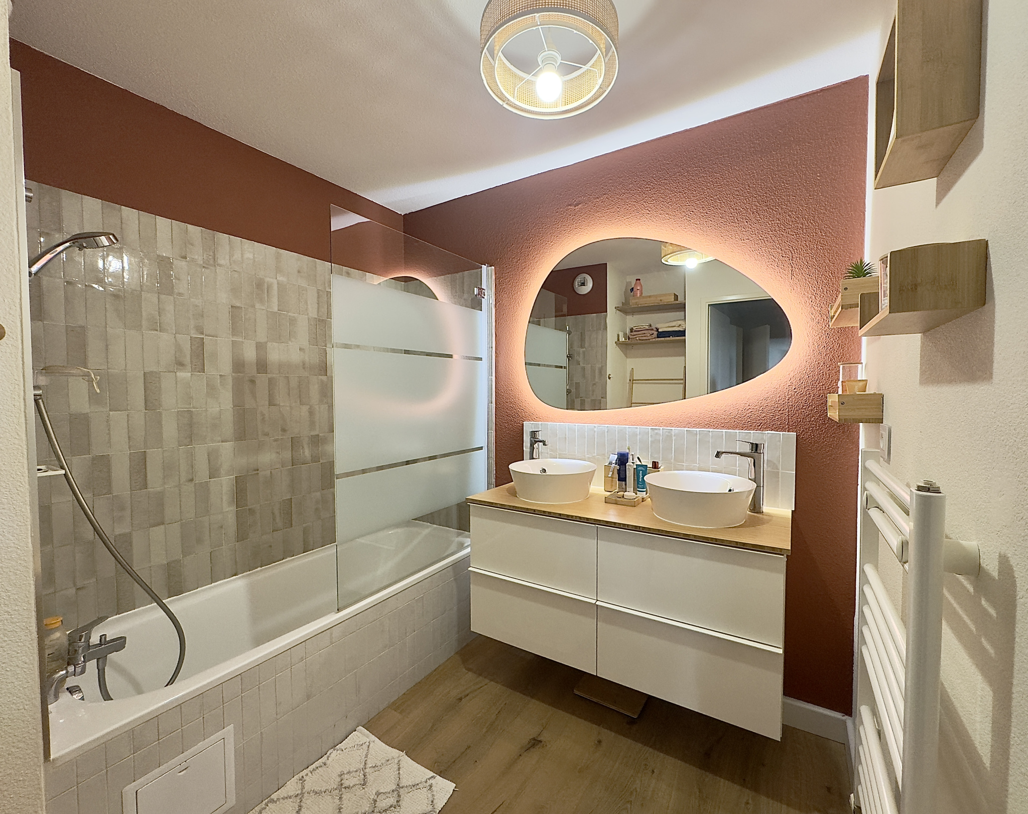 Vous profitez de trois belles chambres équipées de rangements. La suite parentale dispose de son propre espace salle d’eau privatif, et vous bénéficiez également d’une seconde salle d’eau ainsi que d’un WC séparé. Les trois chambres donnent accès à une seconde terrasse de 10 m².