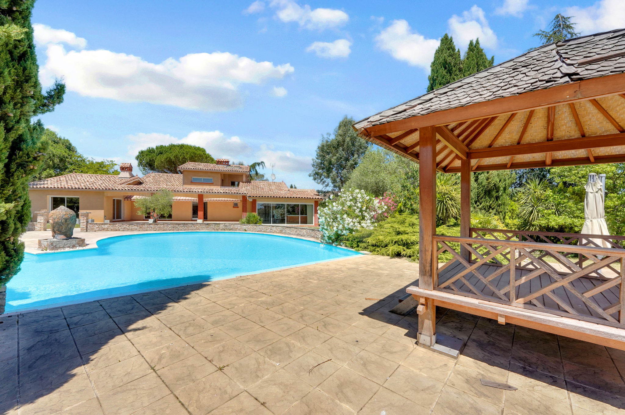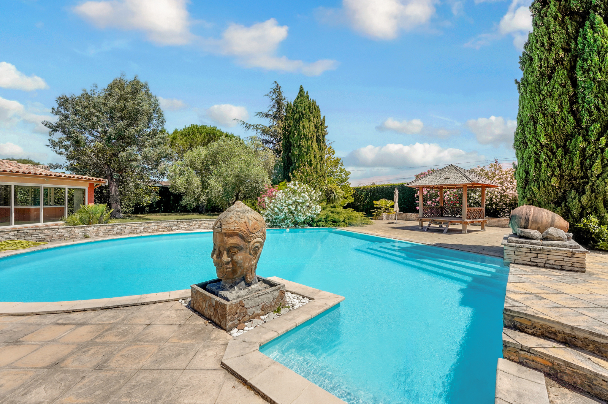 À l’extérieur, les prestations sont tout aussi qualitatives. Le jardin, paysagé avec soin, dispose de deux puits pour l’arrosage automatique. Un triple garage permet de stationner plusieurs véhicules en toute sécurité. Le pool house de 70 m² est équipé d’une cuisine d’été, d’un espace barbecue, d’une salle d’eau et de toilettes, parfait pour recevoir famille et amis. La piscine à débordement, chauffée et traitée au sel, offre un bassin de 72 m² aux lignes originales, entouré de plages. Elle est accompagnée d’un beau kiosque balinais, véritable invitation à la détente.