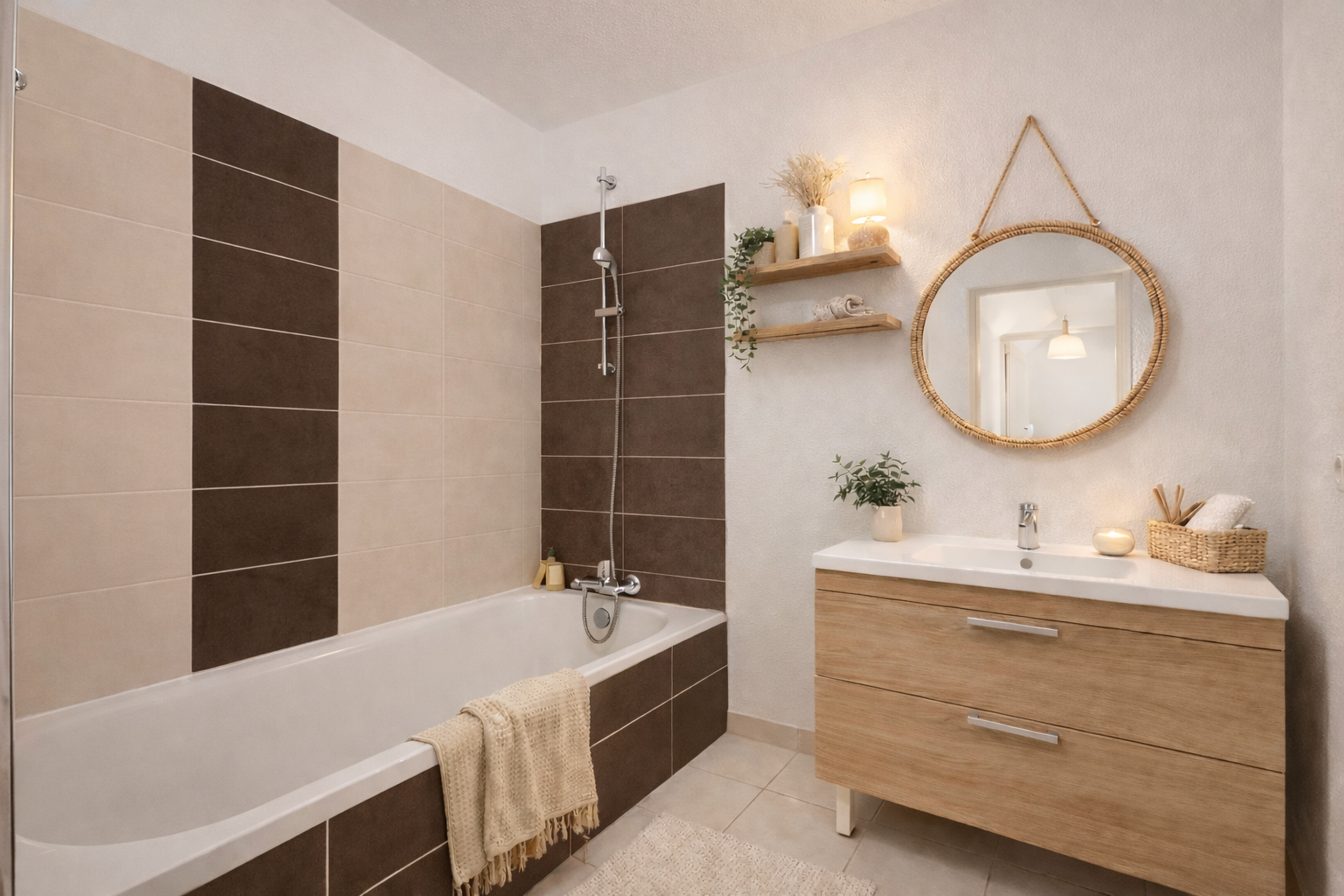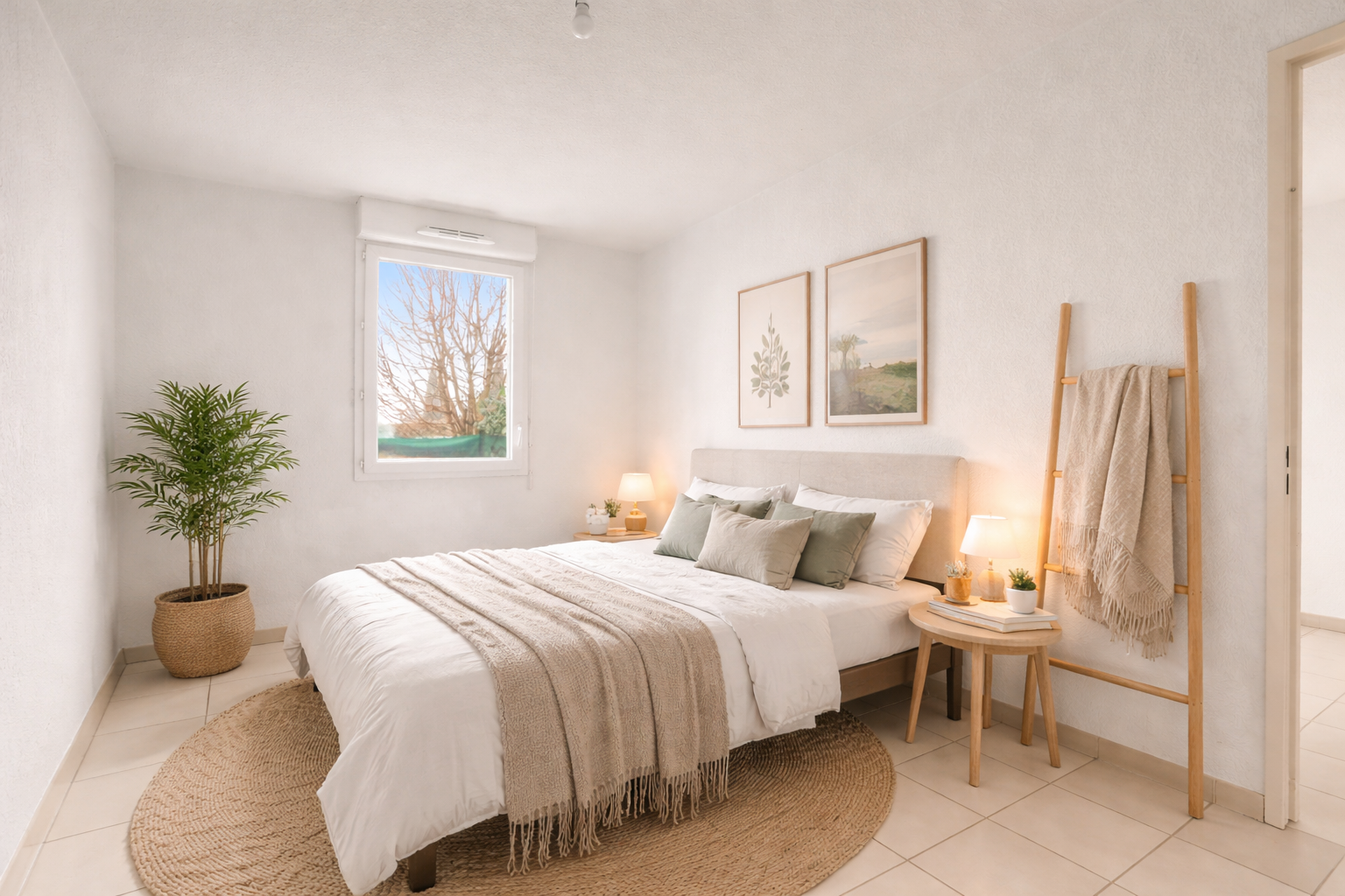La partie nuit se compose d’une chambre spacieuse avec rangements, ainsi que d’une salle de bains moderne, apportant un confort optimal au quotidien.
