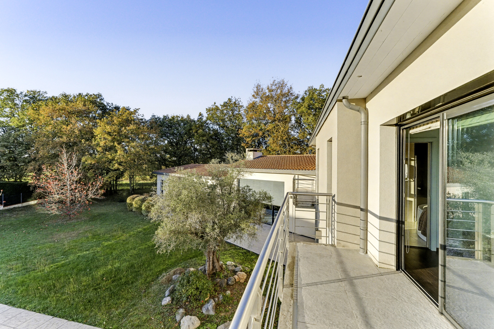 Prestations haut de gamme : domotique, pompe à chaleur, menuiseries aluminium, structure renforcée, diagnostics irréprochables.
