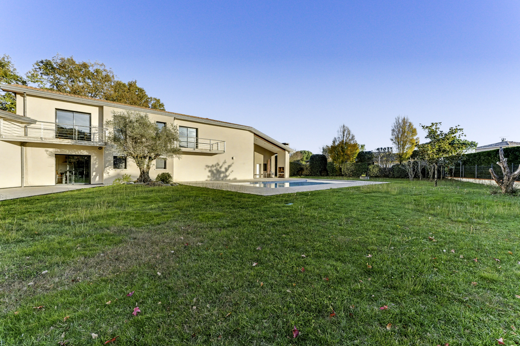 À 25 minutes de Toulouse et rapidement connectée aux pôles aéronautiques de Colomiers et Blagnac, cette propriété d'architecte contemporaine se situe au cœur du très recherché Domaine de Banayre, un environnement résidentiel privilégié et préservé.