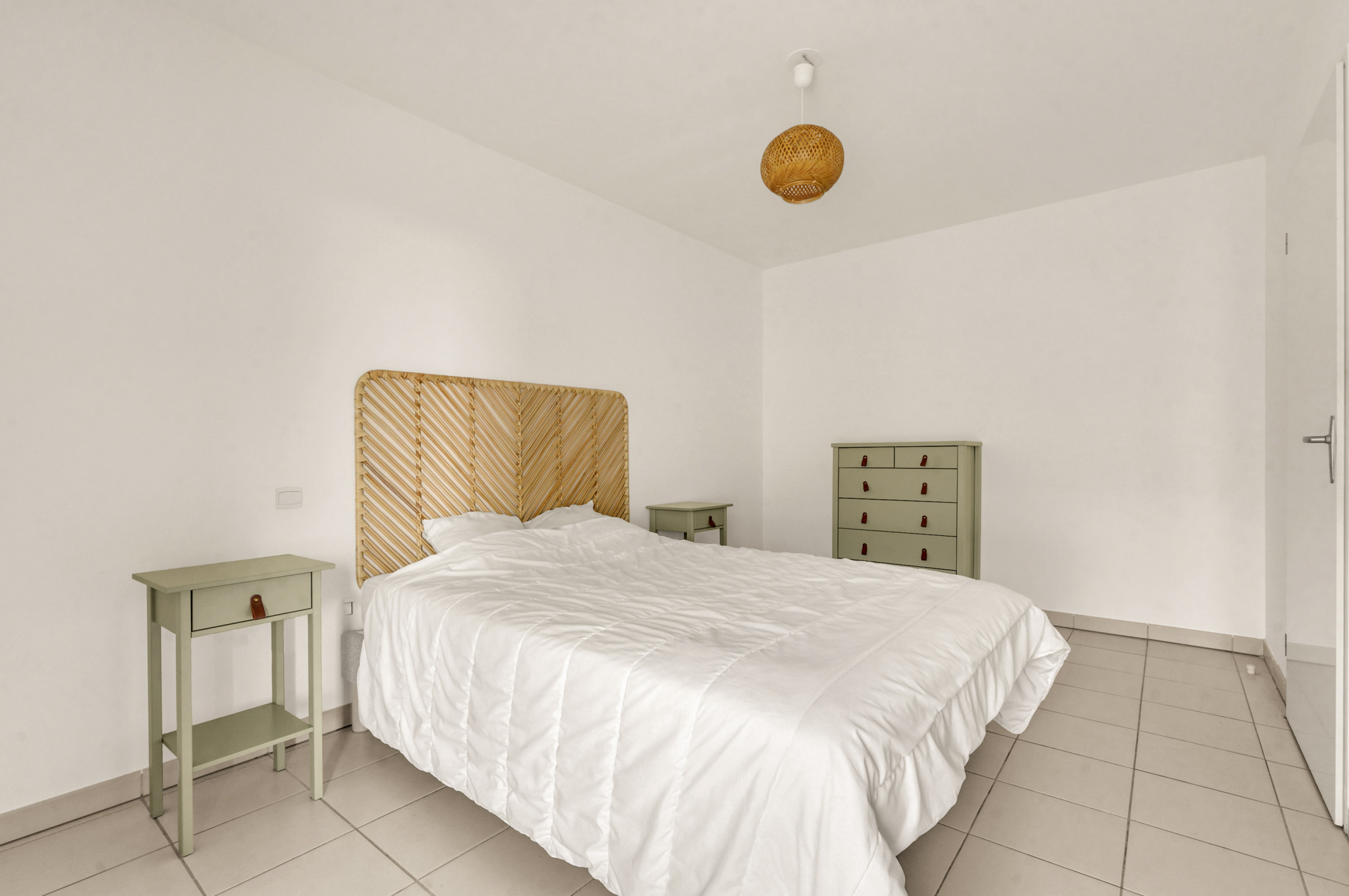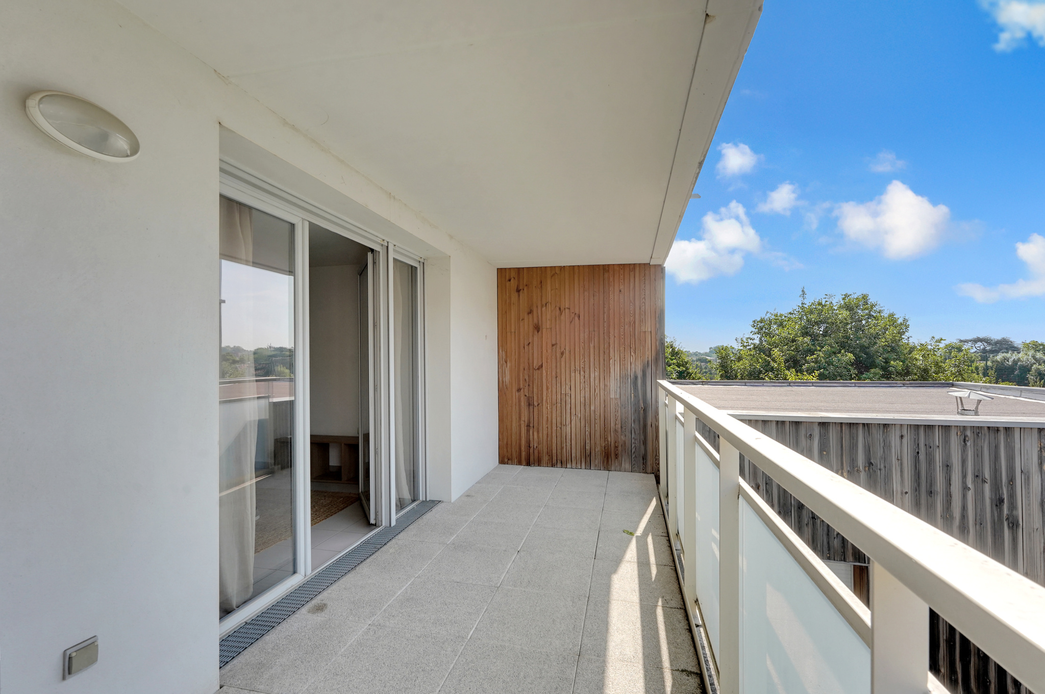 Dès l’entrée, vous serez accueilli par un espace avec placard intégré, suivi d’un séjour lumineux avec cuisine ouverte, parfaitement agencé, qui s’ouvre sur une belle terrasse de 14 m² prolongée par une loggia fermée – un véritable atout pour profiter de l’extérieur en toute saison.