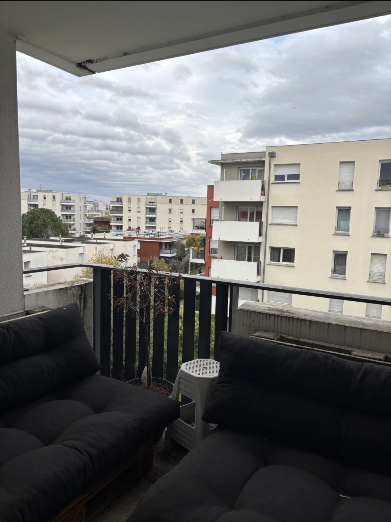 Il offre une entrée avec rangement, une salle de bains avec WC, un séjour lumineux avec cuisine ouverte donnant sur un agréable balcon de 7 m², ainsi qu’une grande chambre disposant également d’un accès extérieur.