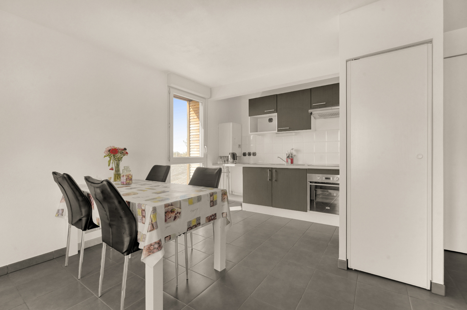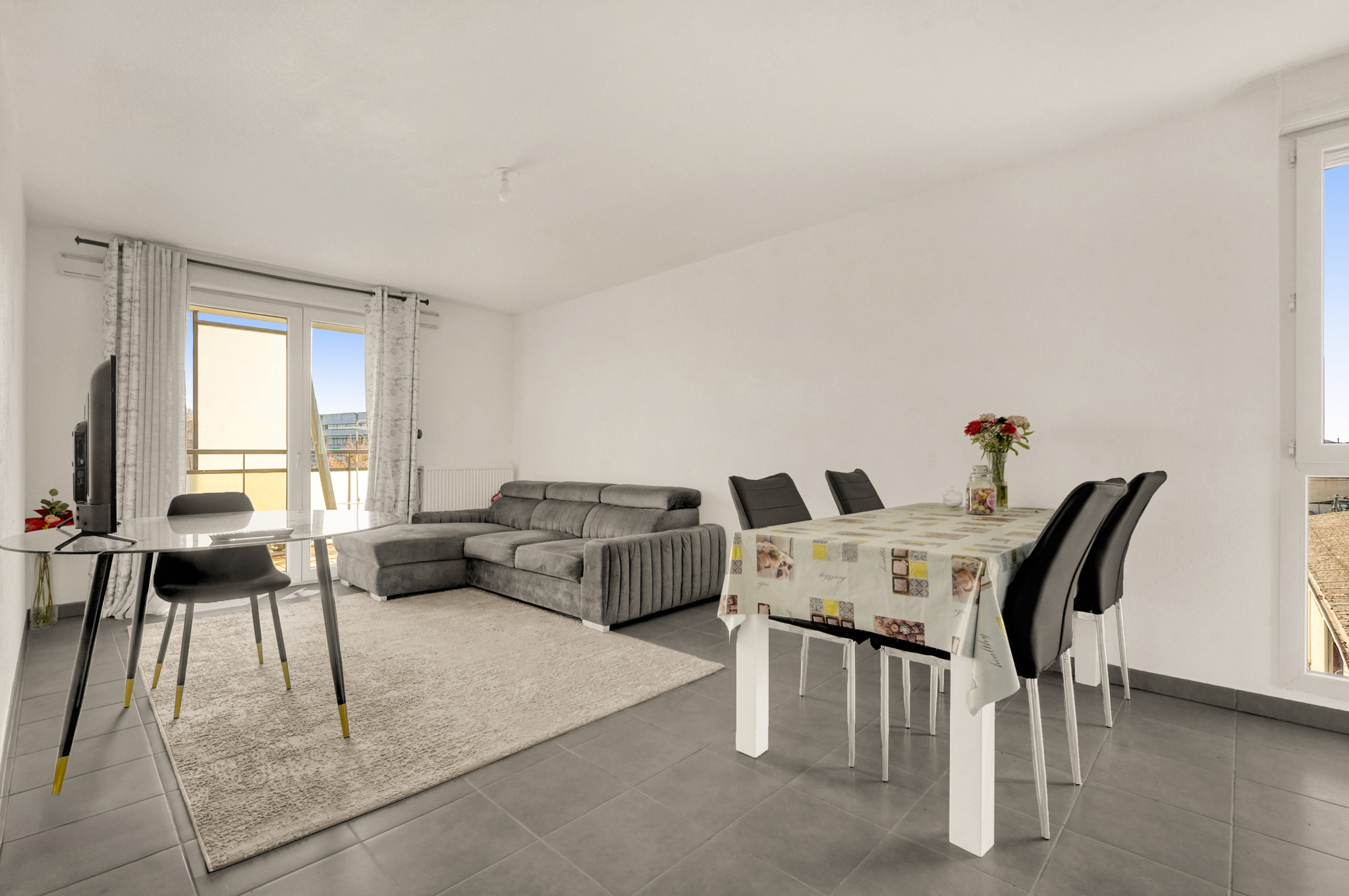 Dès l'entrée, vous serez accueilli par un espace avec rangements pratiques. Le séjour lumineux, agrémenté d'une cuisine ouverte, s'ouvre sur une grande terrasse d'environ 14 m², idéale pour profiter des journées ensoleillées et organiser des moments conviviaux en extérieur.