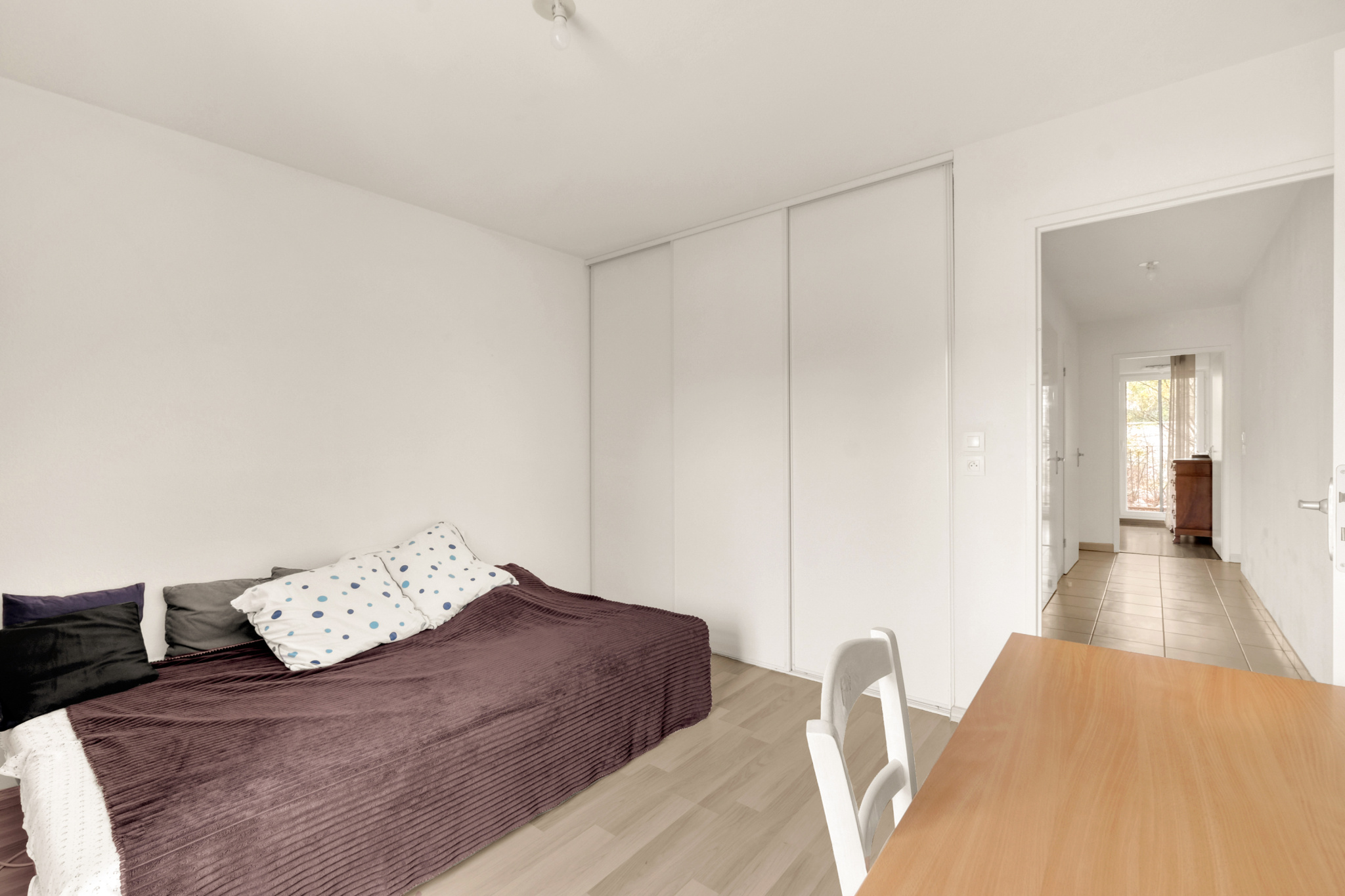 Dès l’entrée, vous apprécierez les rangements pratiques. Le séjour lumineux de 24 m² avec cuisine ouverte s’ouvre sur une vaste terrasse d’environ 17 m², idéale pour profiter des beaux jours. Les deux chambres, toutes deux spacieuses et équipées de placards, offrent confort et praticité ; l’une d’elles dispose même d’un accès direct à une seconde terrasse d’environ 7 m².