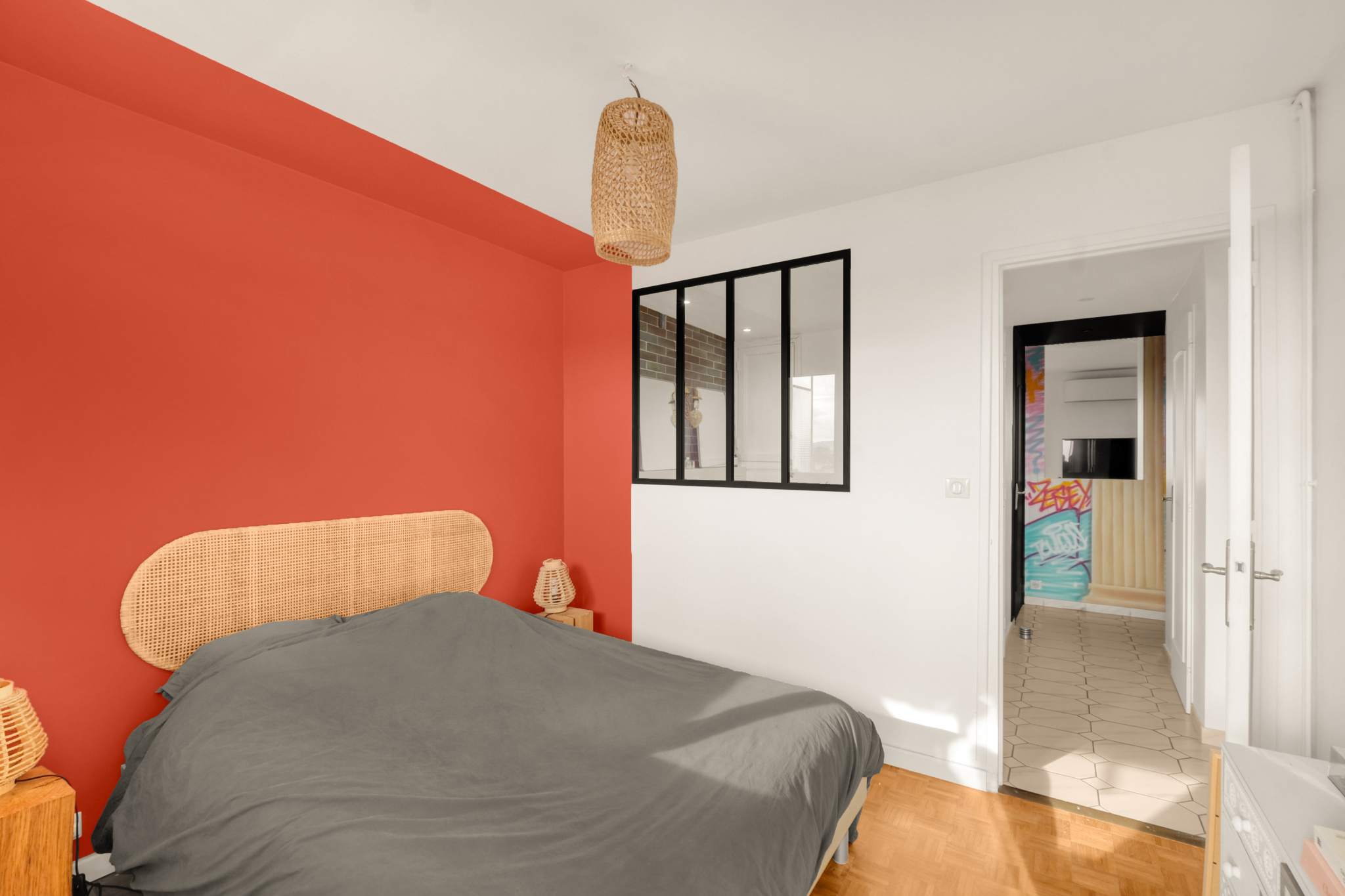L’appartement est en parfait état, avec une décoration actuelle et tendance, dans un esprit cocooning.