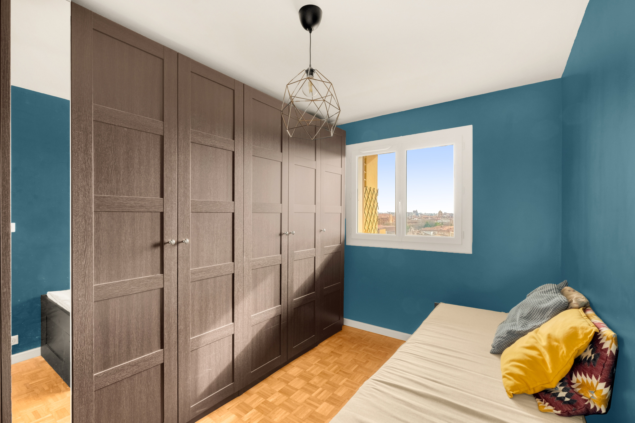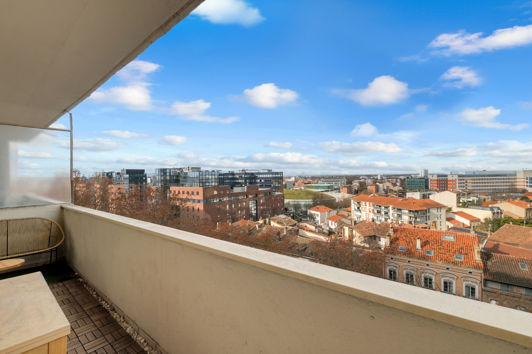 Le vrai plus : une vue dégagée et spectaculaire, des deux côtés de l’appartement, sur les toits de Toulouse et ses clochers.