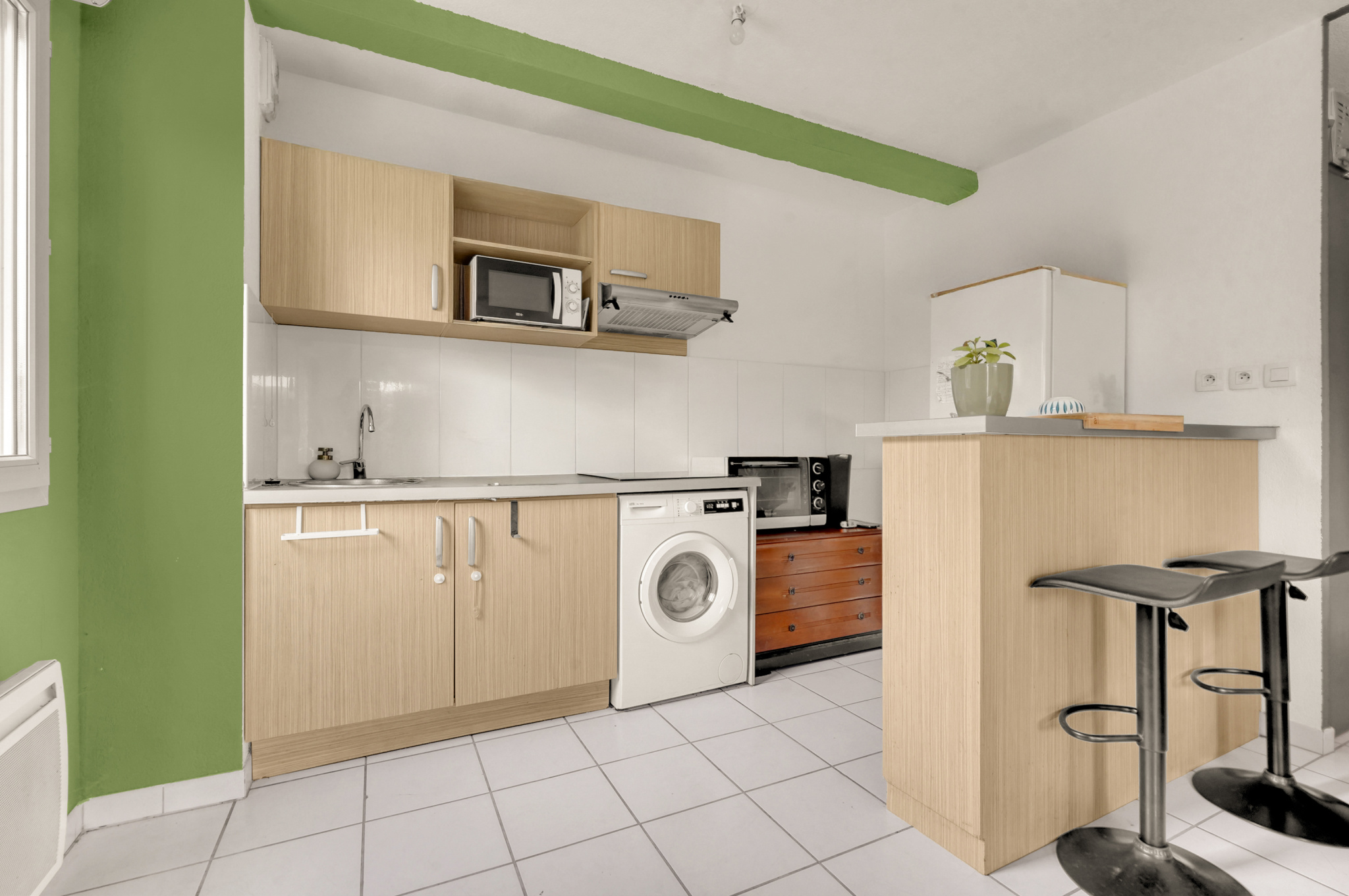 Il se compose d’une entrée avec dégagement, d’un séjour lumineux avec cuisine ouverte donnant sur une terrasse de 15 m², de deux grandes chambres dont l’une avec placard, d’une salle de bains et de WC séparés.
