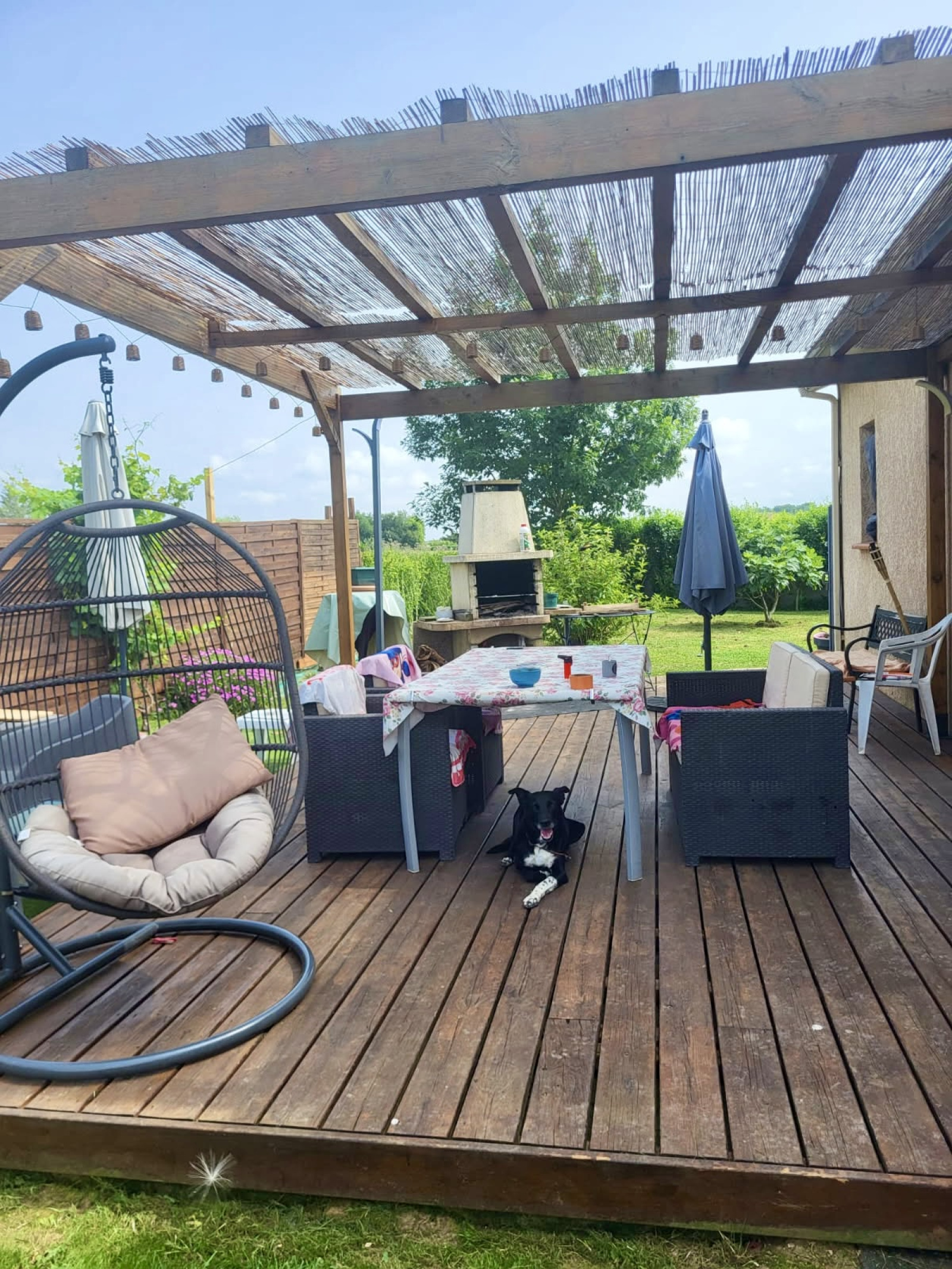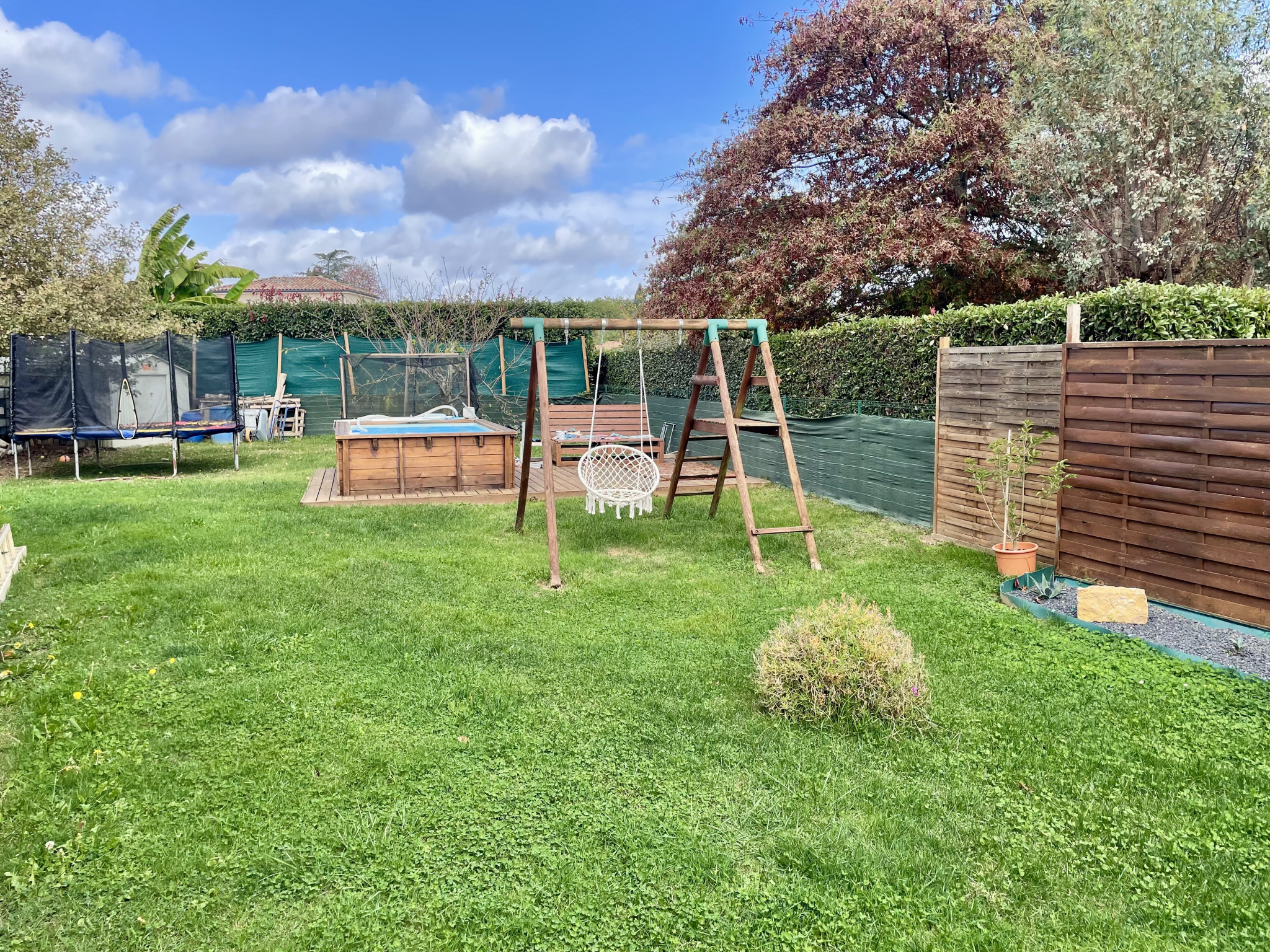 À l’extérieur, vous profiterez d’un jardin d’environ 740 m² sans vis-à-vis, parfaitement aménagé avec une terrasse, un cabanon pour le rangement, un coin barbecue et une piscine hors sol au chlore, idéal pour les beaux jours et les moments en famille ou entre amis.