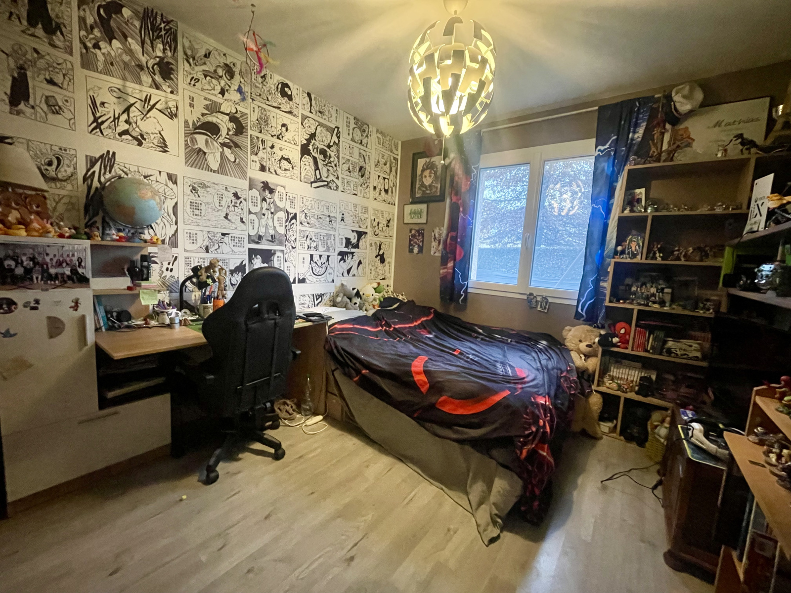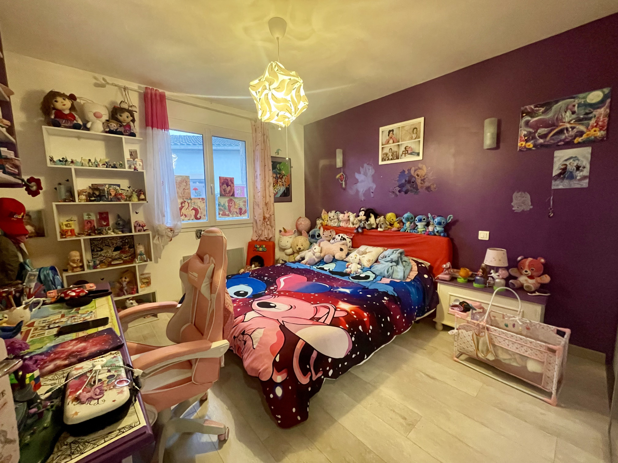 Côté nuit, la maison offre trois chambres avec placards ainsi qu'une salle de bain spacieuse équipée d’une douche et d’une baignoire. Vous profiterez également d'un garage aménagé en bureau, pouvant facilement être transformé en chambre supplémentaire ou atelier selon les besoins.