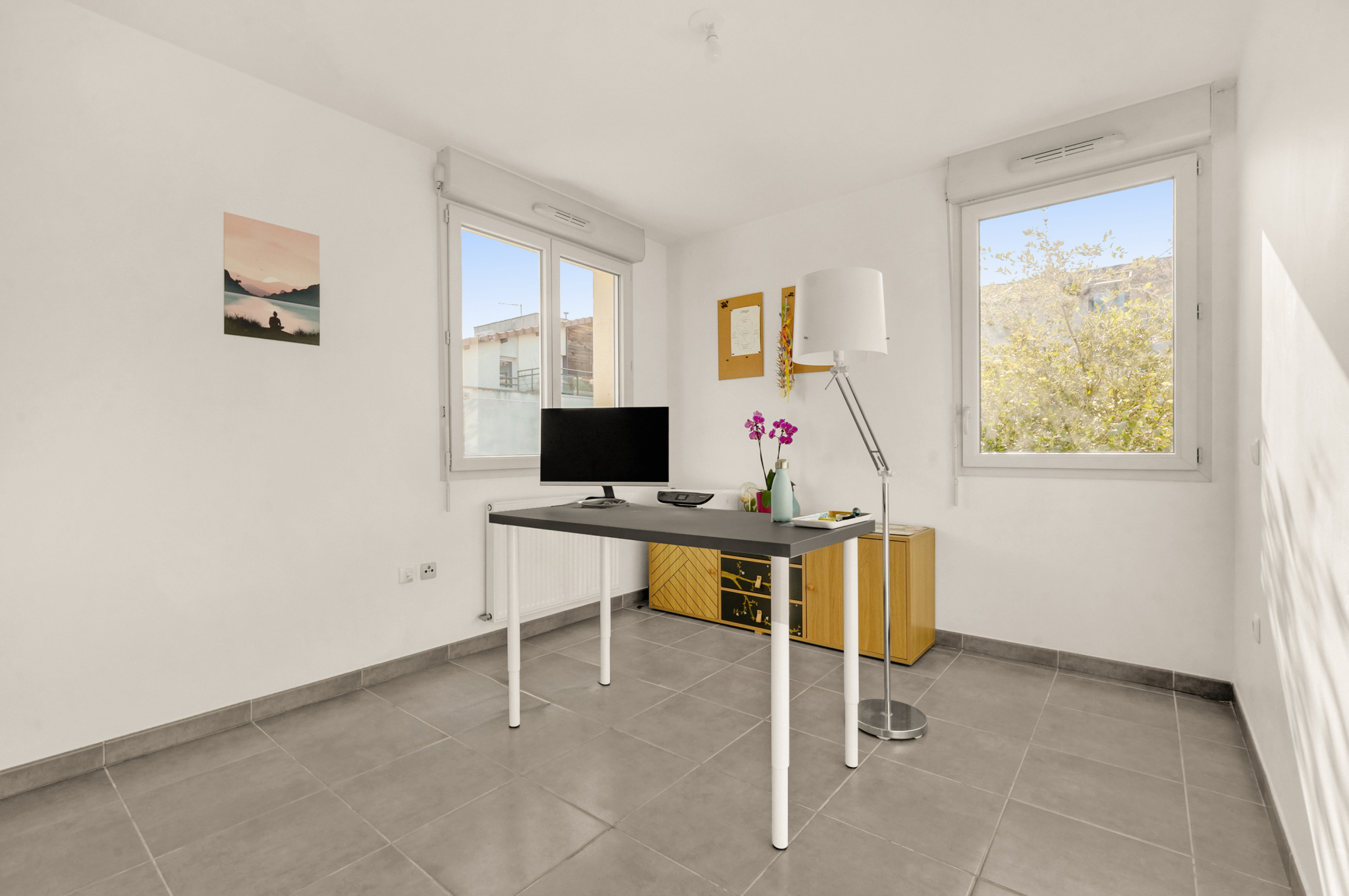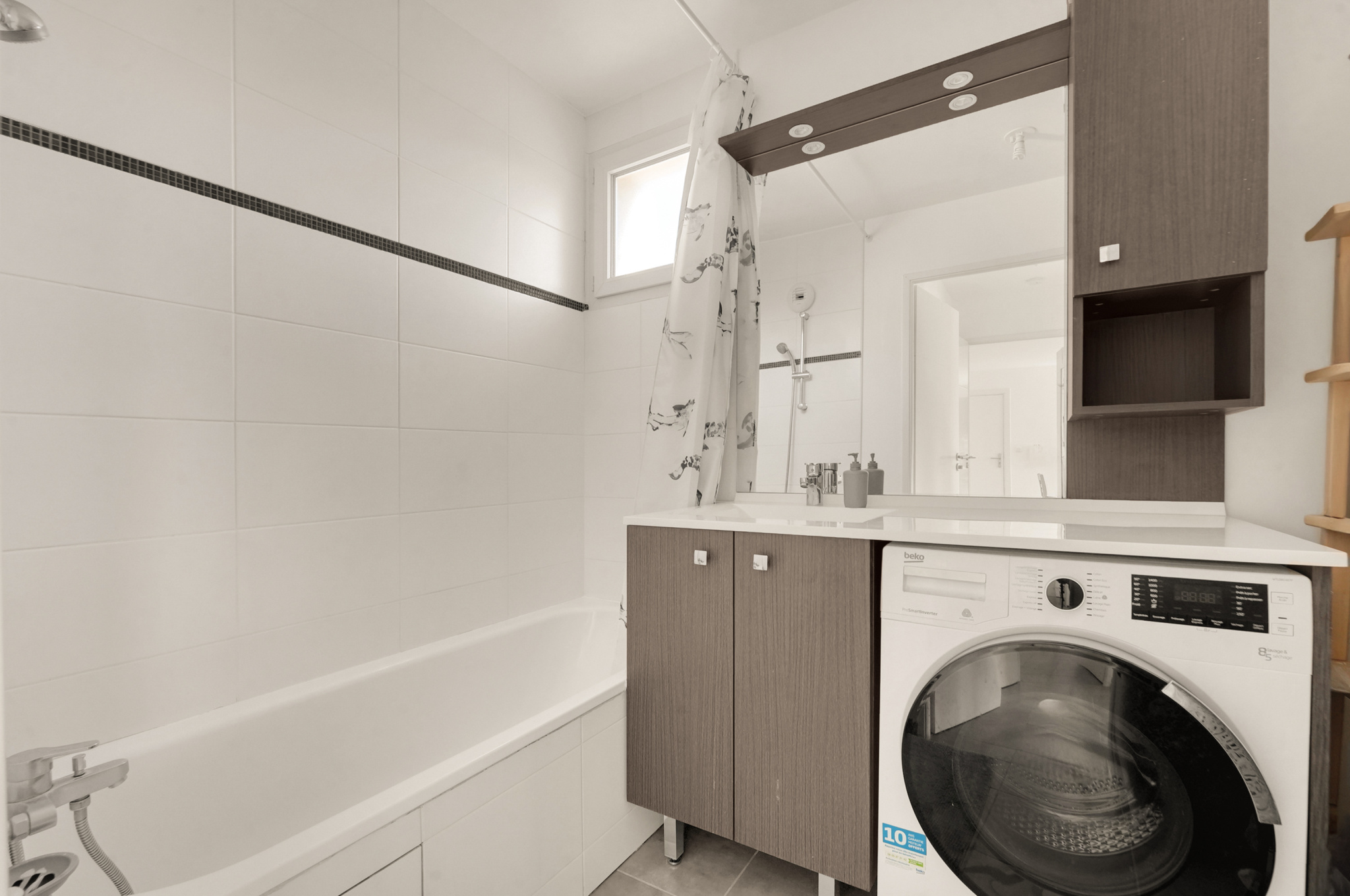 La partie nuit se compose de deux grandes chambres spacieuses de plus de 11 m2, avec placards. Une salle de bains moderne et fonctionnelle apporte un confort optimal au quotidien.